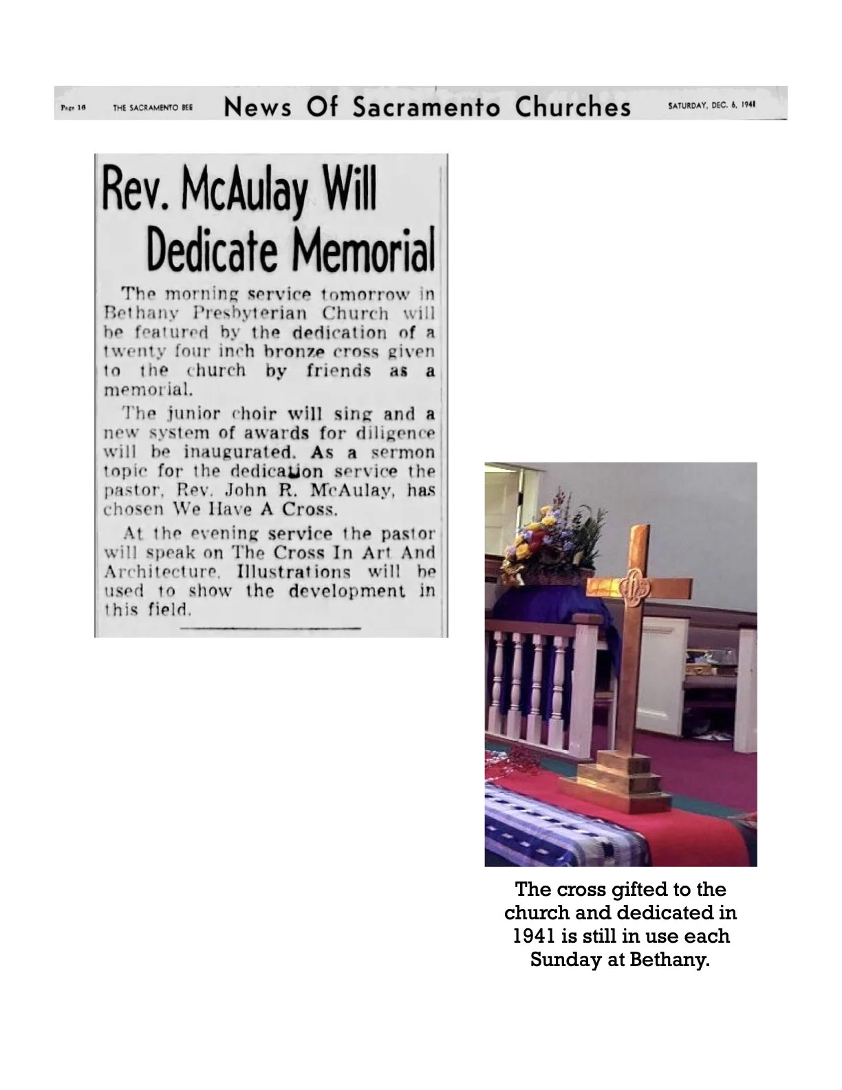 November 28, 2024 Bethany Presbyterian Blast From the Past • 1941 November 28, 2024 Bethany Presbyterian Brass Cross DedicatedDecember 7, 1941 Bethany Presbyterian
