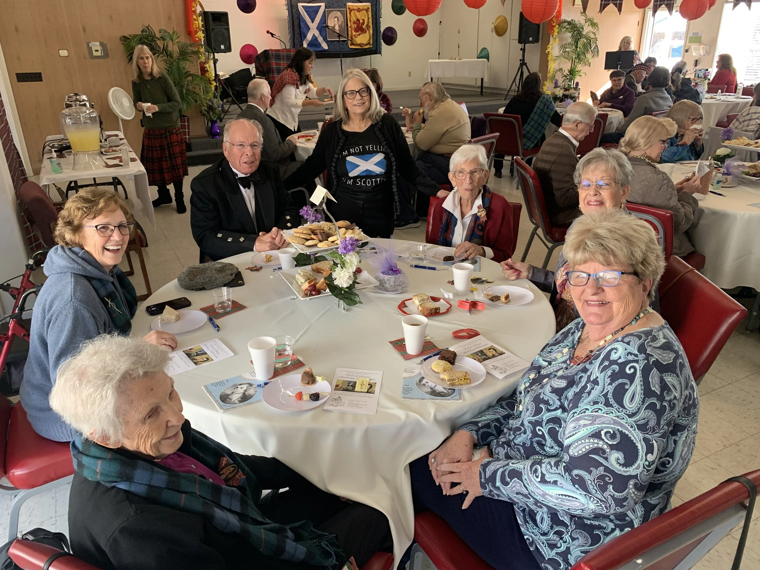 The 264th birthday of esteemed Scottish poet Robert Burns was celebrated at Bethany Saturday, January 28. Several Bethany members are affiliated with Kilwinning Lodge #203, Daughters of Scotia, which hosted the afternoon event. Scotland-born singer Peter Daldry performed before a crowd of close to 100, and traditional Scottish foods such as shortbread, scones (and yes, haggis!) were served.