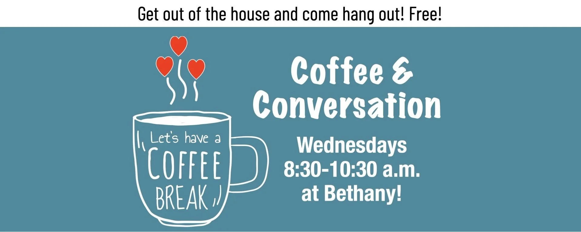 WEDNESDAY, Nov. 27—This is our fourth “Coffee & Conversation” … happening each Wednesday 8:30-10:30 a.m. in the Social Hall! Enjoy free coffee and pastries. This is the perfect excuse to get out of the house for a bit and hang with others. It’s informal; drop in any time. Come by yourself or bring a friend. Meet new people. There’s a place for you here! Questions? Want to help? See Mark Strack, who is organizing this project. More details here.