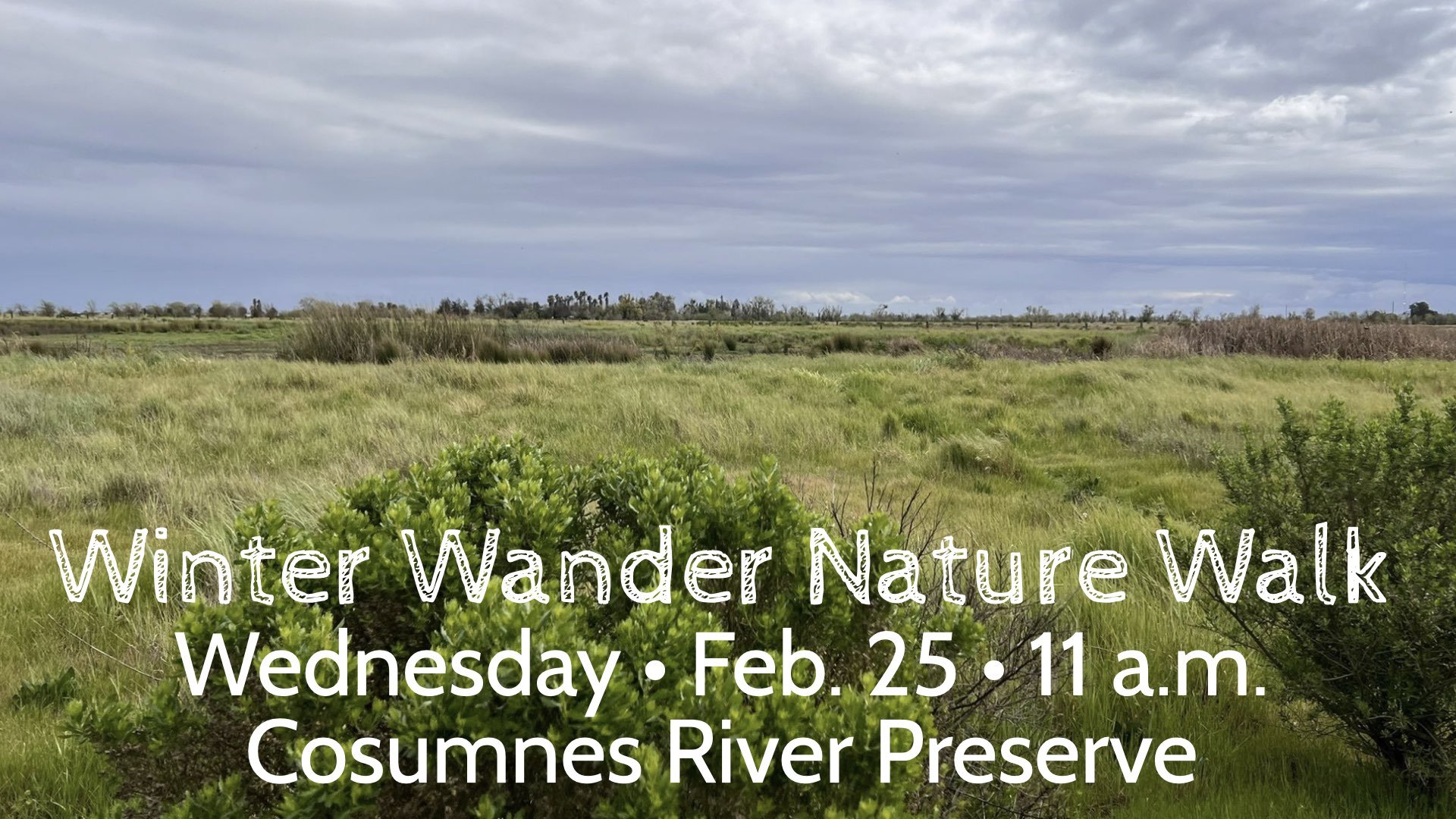 ALSO HAPPENING THIS WEDNESDAY, FEB. 25—Come to the annual Winter Wander Nature Walk at the Cosumnes River Preserve, complete with tailgate party! The walk is wheelchair- and walker-friendly. Or ... instead of walking you can simply sit and enjoy the beautiful scenery and snacks! Show up at the Cosumnes River Preserve at 11 a.m. Make sure you follow the driving directions shown on our website as there are traffic detours and road closures in the area. Questions? Call or text Cathy Sapunor at (916) 832-3373. More info is here.