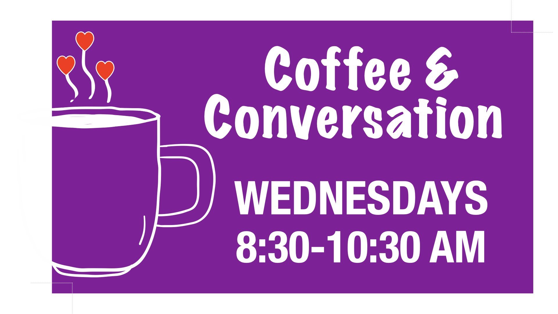 WEDNESDAY, March 25 is our 19th “Coffee & Conversation” … happening each Wednesday 8:30-10:30 a.m. in the Social Hall! Enjoy free coffee and pastries. It’s informal; drop in any time. Come by yourself or bring a friend. Questions? Want to help? See Mark Strack. More details here.