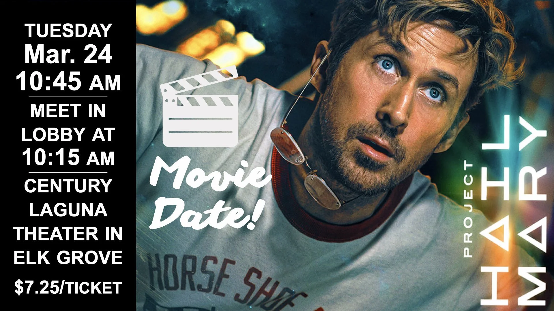 TUESDAY, March 24—Bethany’s Movie Group invites everyone to join in seeing the acclaimed new sci fi film “Project Hail Mary.” Ryan Gosling stars in this story about a teacher-scientist. The film starts at 10:45 a.m. at the Cinemark Century Laguna Theater, 9349 Big Horn Blvd., Elk Grove. Meet in the lobby at 10:15 a.m. Tickets are $7.25. CLICK HERE FOR MORE DETAILS.