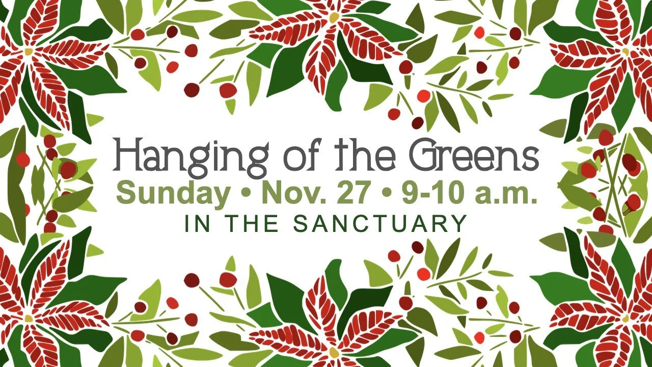 The season of Advent is approaching and we need your help to prepare the church sanctuary. Please join us at 9 a.m. on SUNDAY, Nov. 27 to hang wreaths and garlands. Questions? Contact Jim Guida of the Worship & Arts Commission.