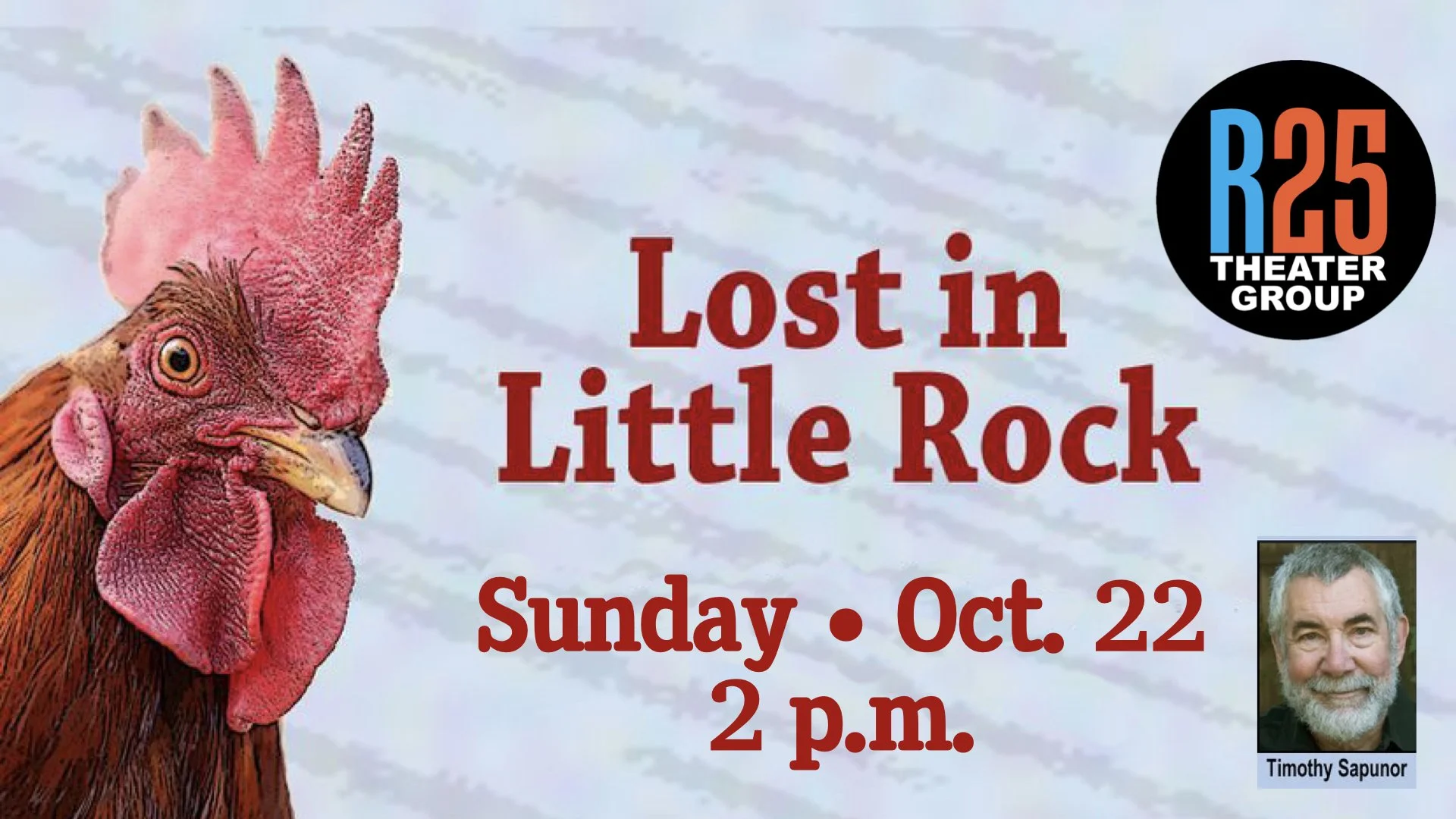 A theater outing for Bethany members and friends will take place Sunday, October 15, after church. We will be seeing the world premiere of local author Linda Taylor’s play “Lost in Little Rock.” "Lost in Little Rock" is an all-too-human exploration of the power of lies and love. (Oh, and there's a rooster.) The matinee starts at 2 p.m. at the California Stage, 2509 R Street in midtown Sacramento (adjacent to light rail track). Our own Tim Sapunor appears in the play!