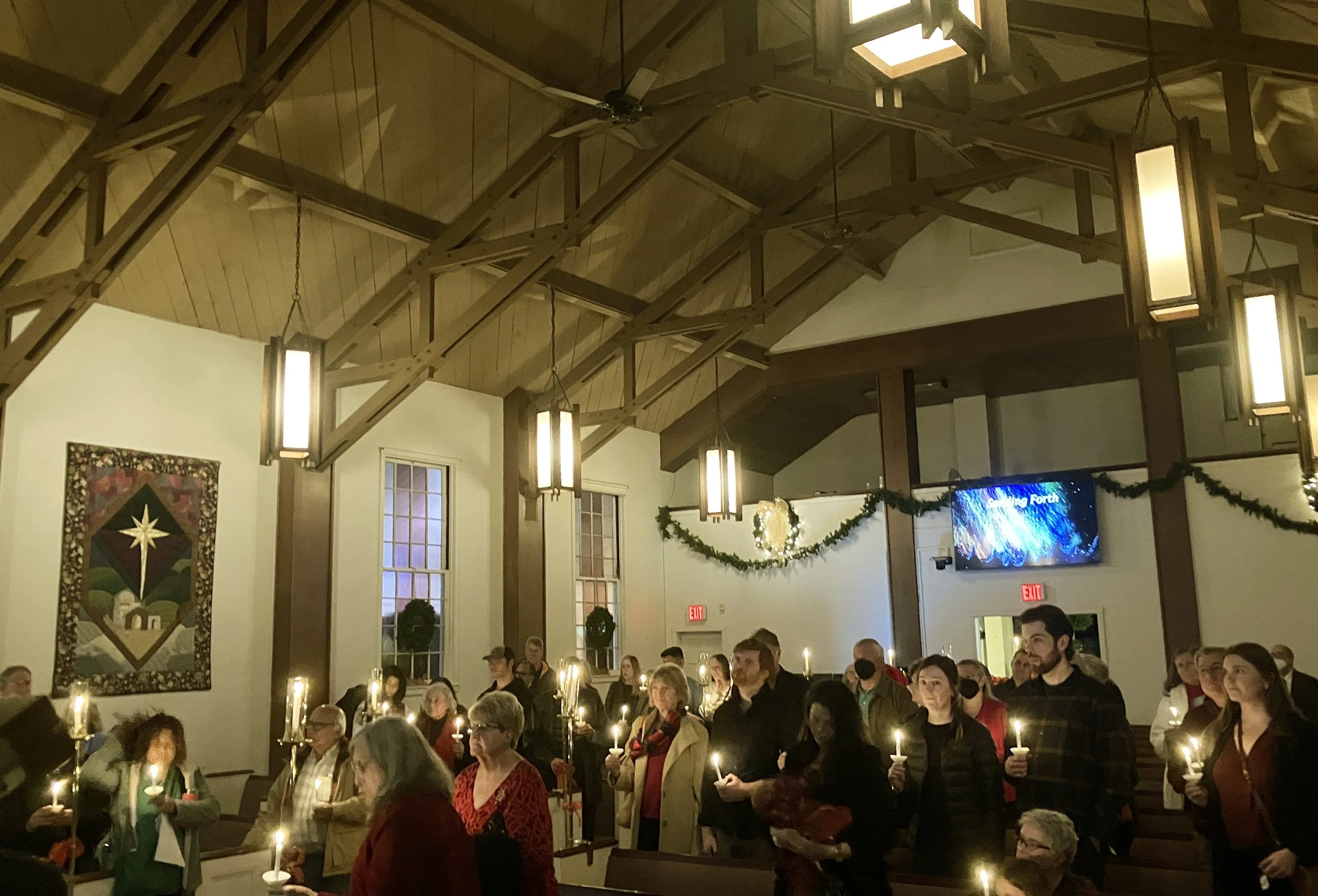 At the close of the service, all are invited to gather with their lit candles on the church steps and join in singing “Joy to the World.” We’ll also be ringing handbells as part of the Worldwide Christmas Eve Jingle, which was started in England in 2020 to combat loneliness and isolation caused by the COVID-19 pandemic. This year, we are emphasizing peace and justice with our bell-ringing. Everyone who comes will get a free bell to take home.