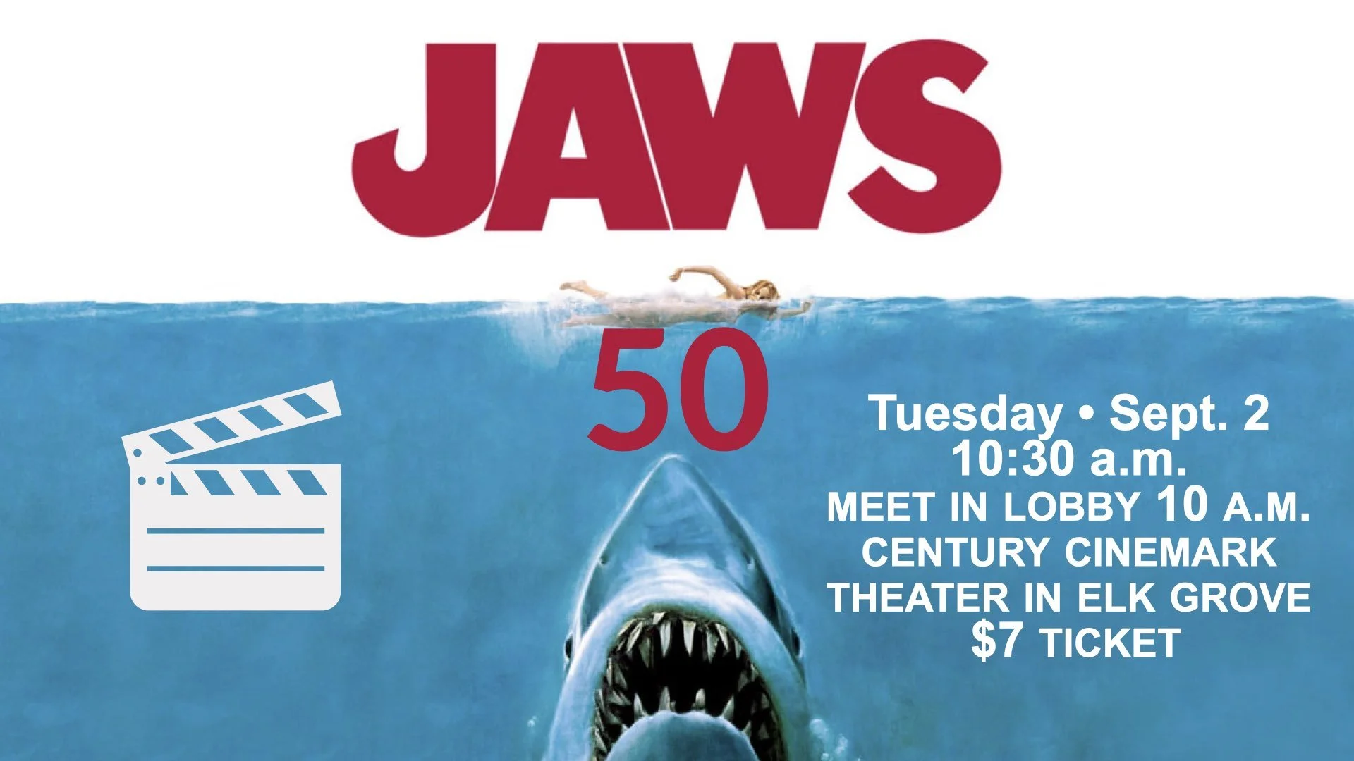 On Tuesday, September 2, Bethany family and friends are invited to enjoy the 50th anniversary re-release of Stephen Spielberg’s “Jaws.” It’s showing at the Cinemark Century Laguna Theater, 9349 Big Horn Blvd., Elk Grove. Click here for the location.