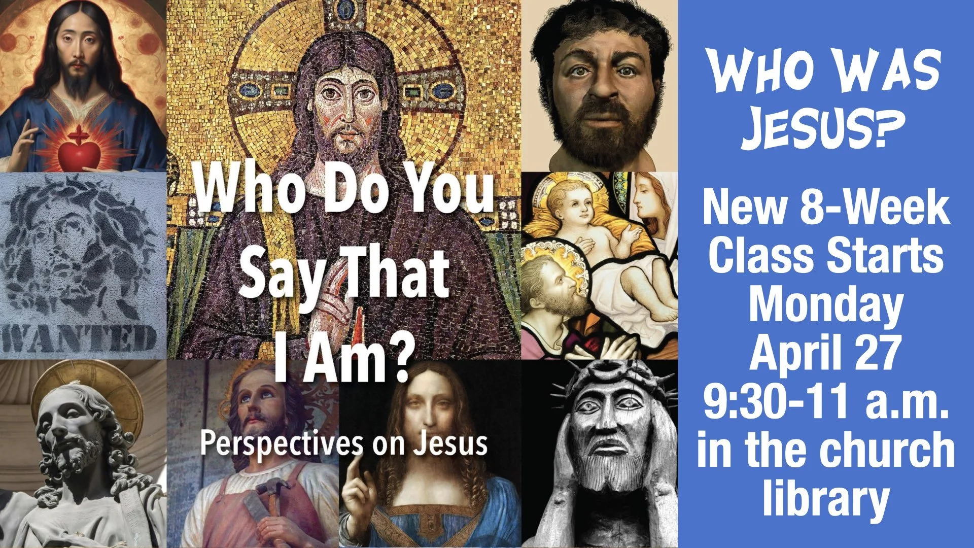 In this new 8-part series, we will explore the question “who was Jesus” in several different ways. We’ll find out “who said what” about Jesus in the Bible … in history … and in other faith traditions. We’ll also have a chance to talk about Jesus as his life and legacy are experienced and interpreted in modern times.