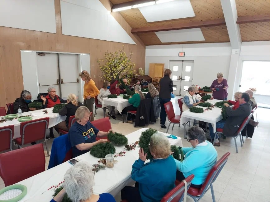 The last time "Lunch and Learn" was held was the day before we entered into our first COVID-19 lockdown: March 12, 2020. Just think of all that has happened in our lives, in our nation, and in our world in the past 19 months of the pandemic! So today was an absolute joy to return to Fellowship Hall for "Lunch and Learn!" The photo shown here is of the group making advent wreaths. We also sang a few seasonal songs, enjoyed a delicious meal, and just relished being able to be together! No matter what comes our way, God remains faithful! I hope that all of you are beginning to share in more of these wonderful "reunions," too.