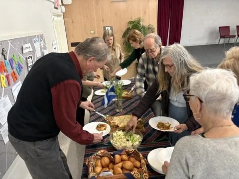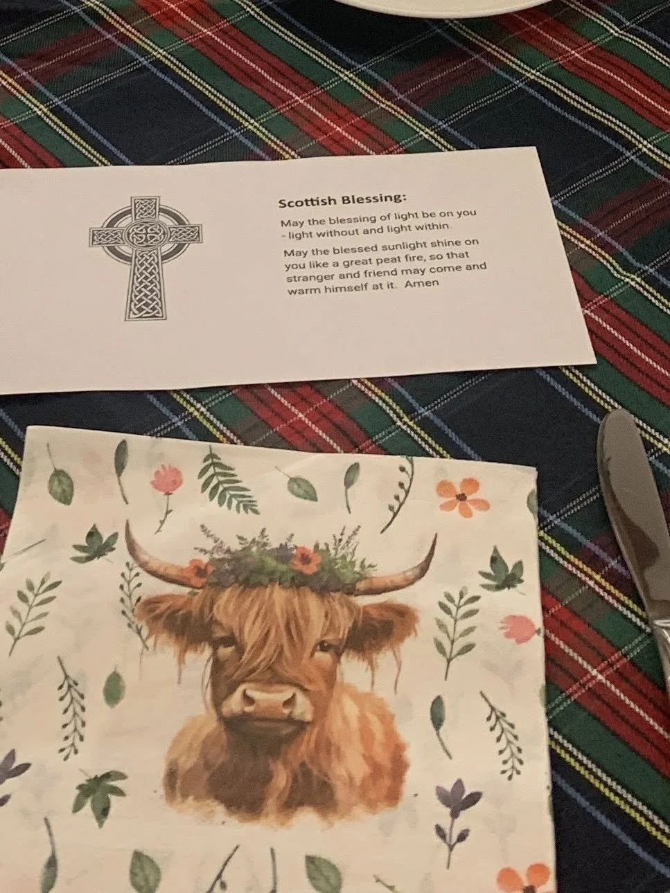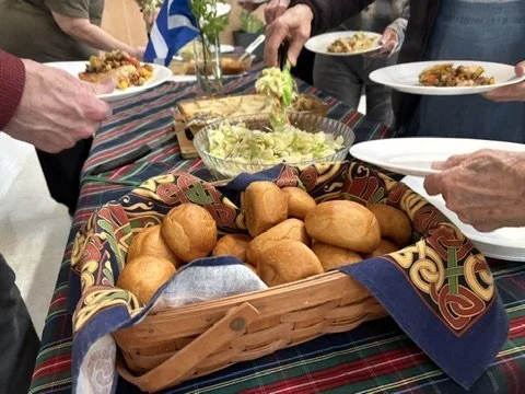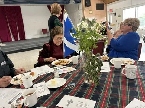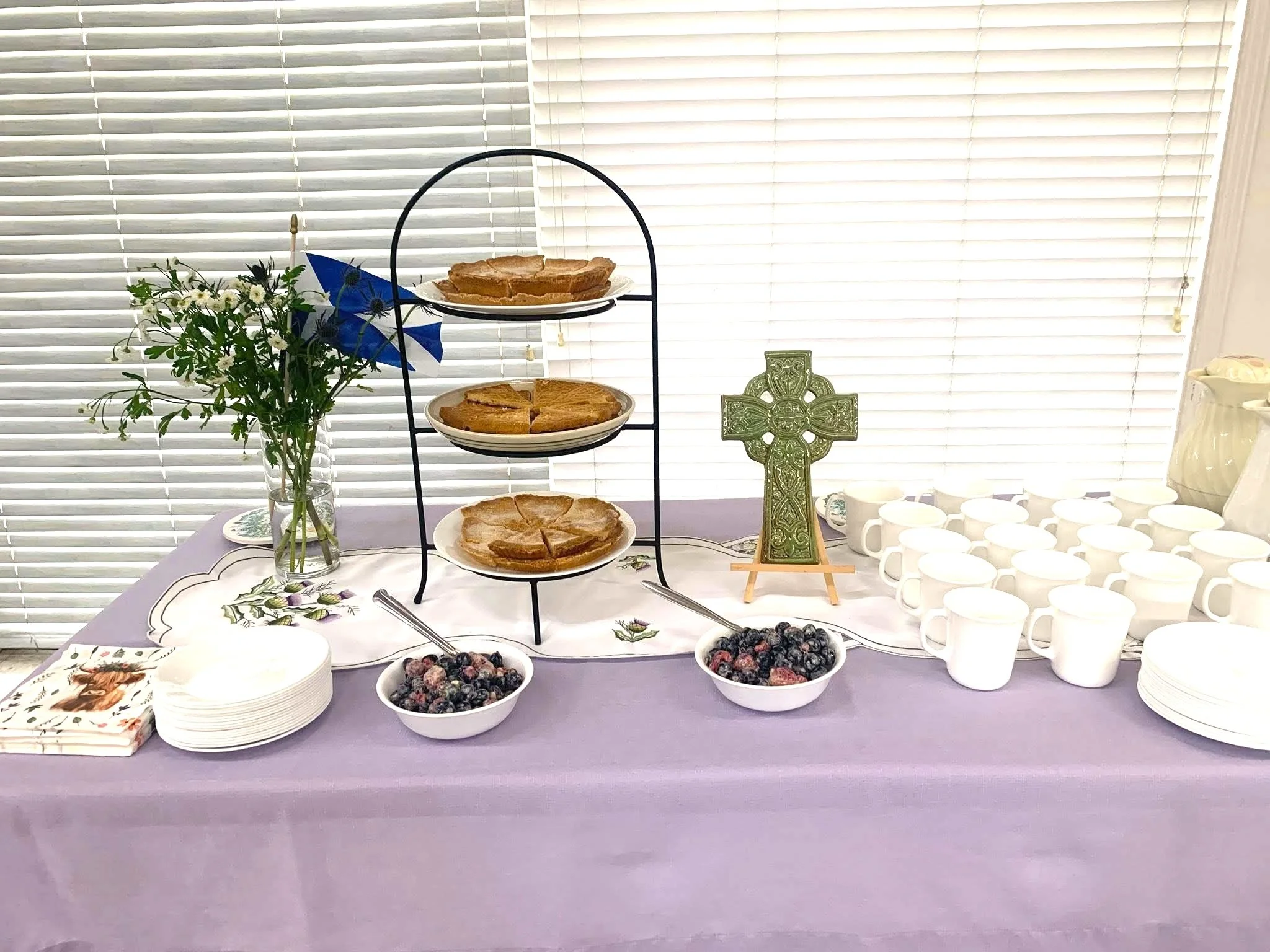 About two dozen people gathered to learn about the Scottish heritage of the Presbyterian Church (as presented by Rev. Judy Davis) …. sing Scottish songs (led by Trisha Uhrhammer, Marilee Keene and Juli Jensen) … hand-paint wooden celtic crosses (led by Trisha Uhrhammer) … and enjoy a lunch of shepherd’s pie (prepared by Kathy Frank and Cathy Sapunor). Scottish shortbread home-baked by Kathy Frank, Juli Jensen and Wendy Aiello rounded off the delicious meal. “Lunch & Learn” was funded in part by an Older Adult Ministries grant from our Presbytery.