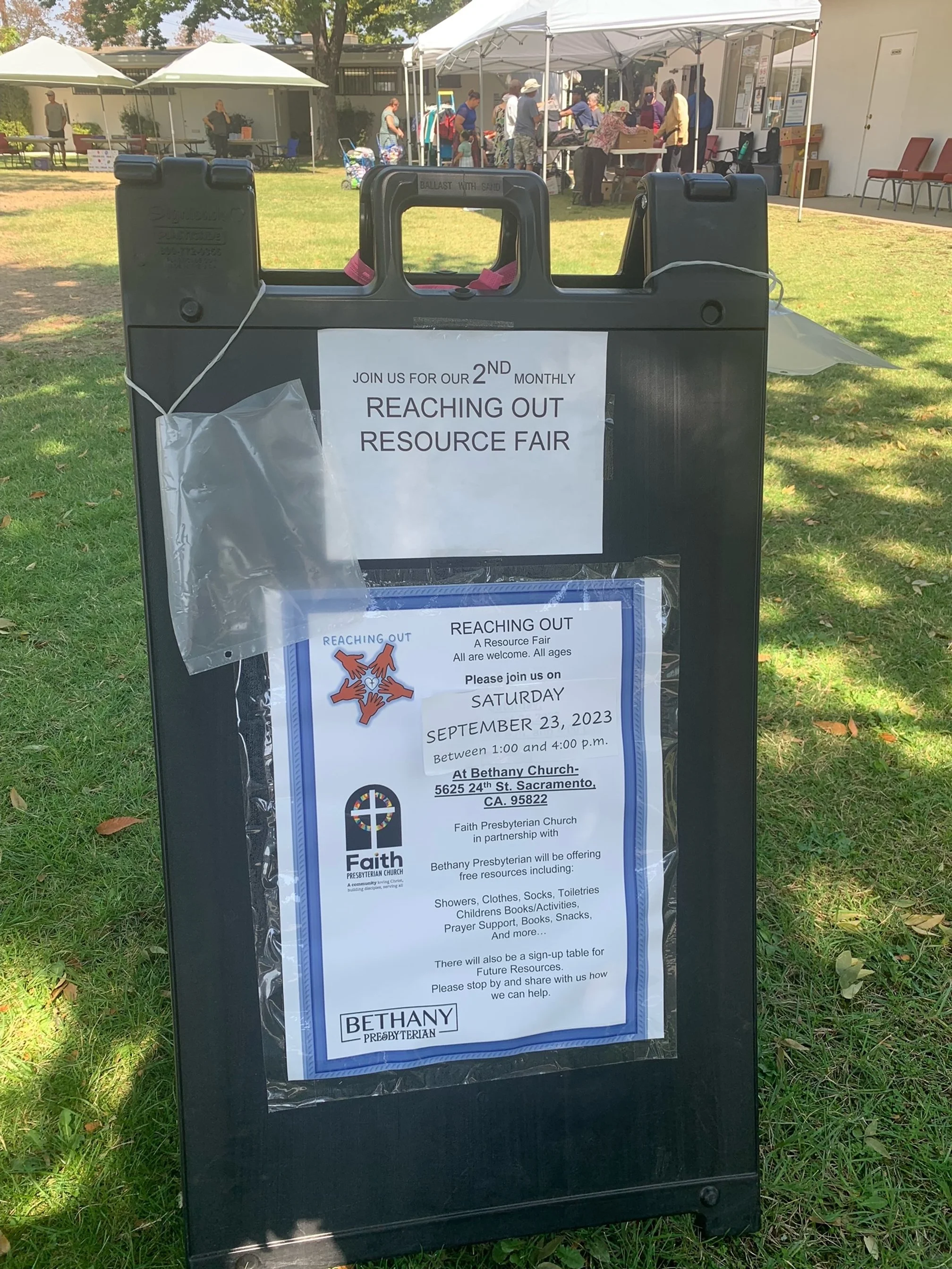 The second in a series of “Reaching Out” community resource fairs was held at Bethany the afternoon of Saturday, September 23. Presented by Faith Presbyterian Church, the event offered free showers, books and other resources to those in need. Bethany elder Susan Just again played a key role in helping with this event.