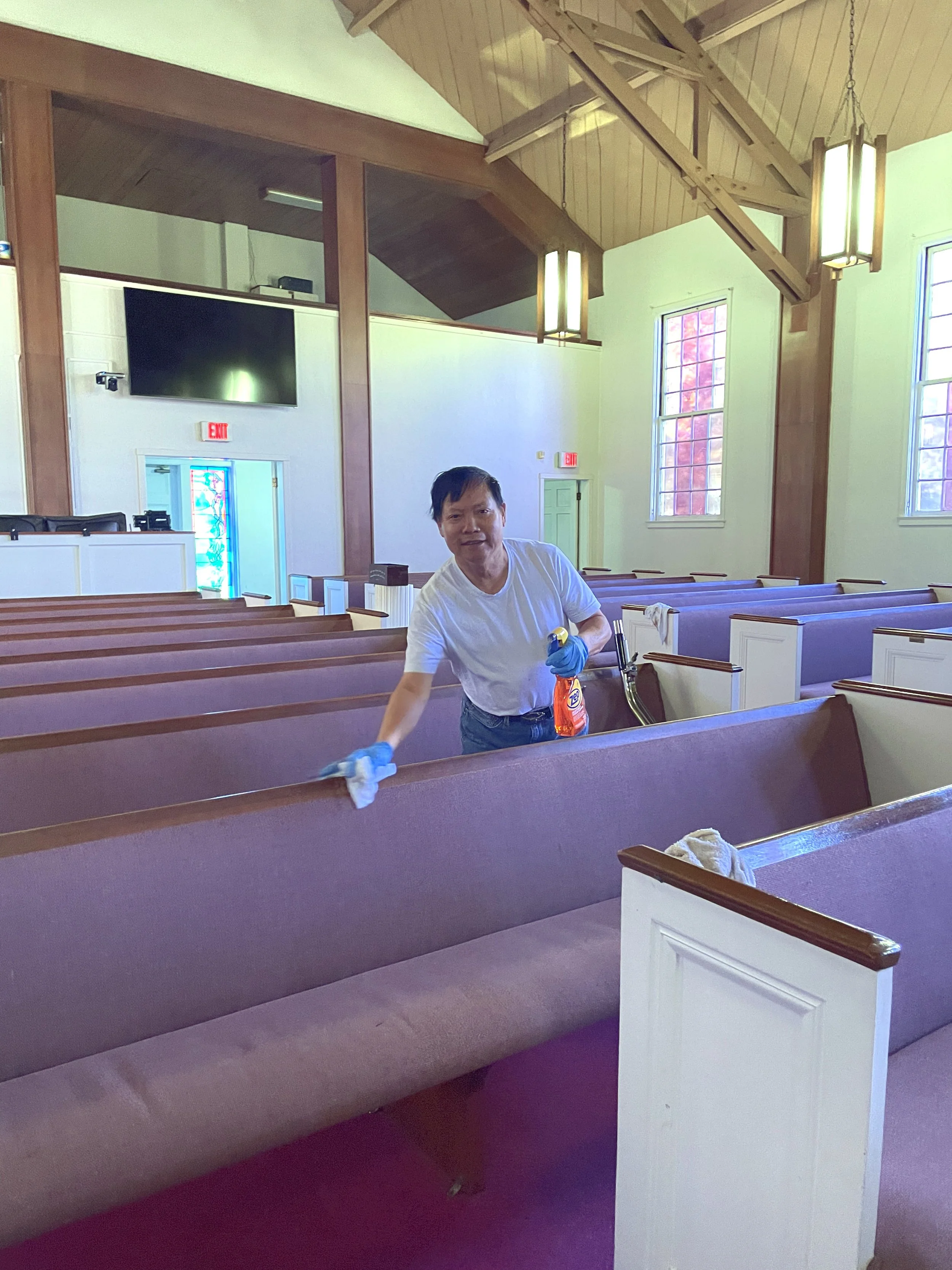 Thanks to hours and hours of hard labor by several Bethany members and friends, the church sanctuary is looking better than it has in years! During the week of November 13, the volunteers brought their own equipment and steam-cleaned all of the carpets and upholstery, tidying hymnals and Bibles and discarding litter. They also polished all of the wood surfaces. The newly cleaned sanctuary is a tangible example of how we can use our gifts to glorify God. Many thanks to volunteers Nga Chau, Marcie Hettenbach, Manh Ong and John Pfitzer, as well as to a few Grace Church members who lent a hand.