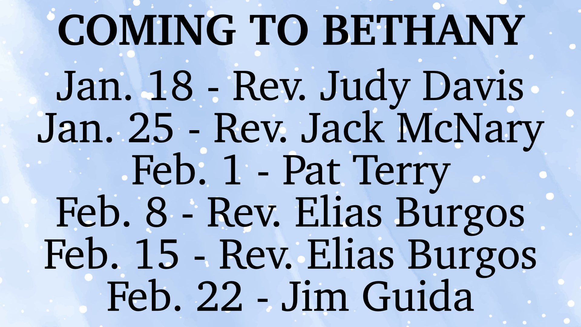 January 18, 2026 Bethany Presbyterian Worship Services Coming to Bethany ... January 18, 2026 Bethany Presbyterian Worship Services Bethany Presbyterian